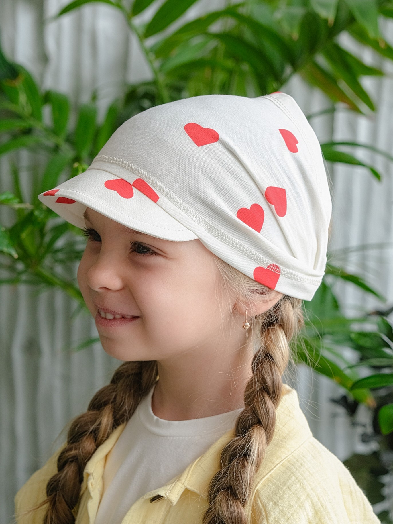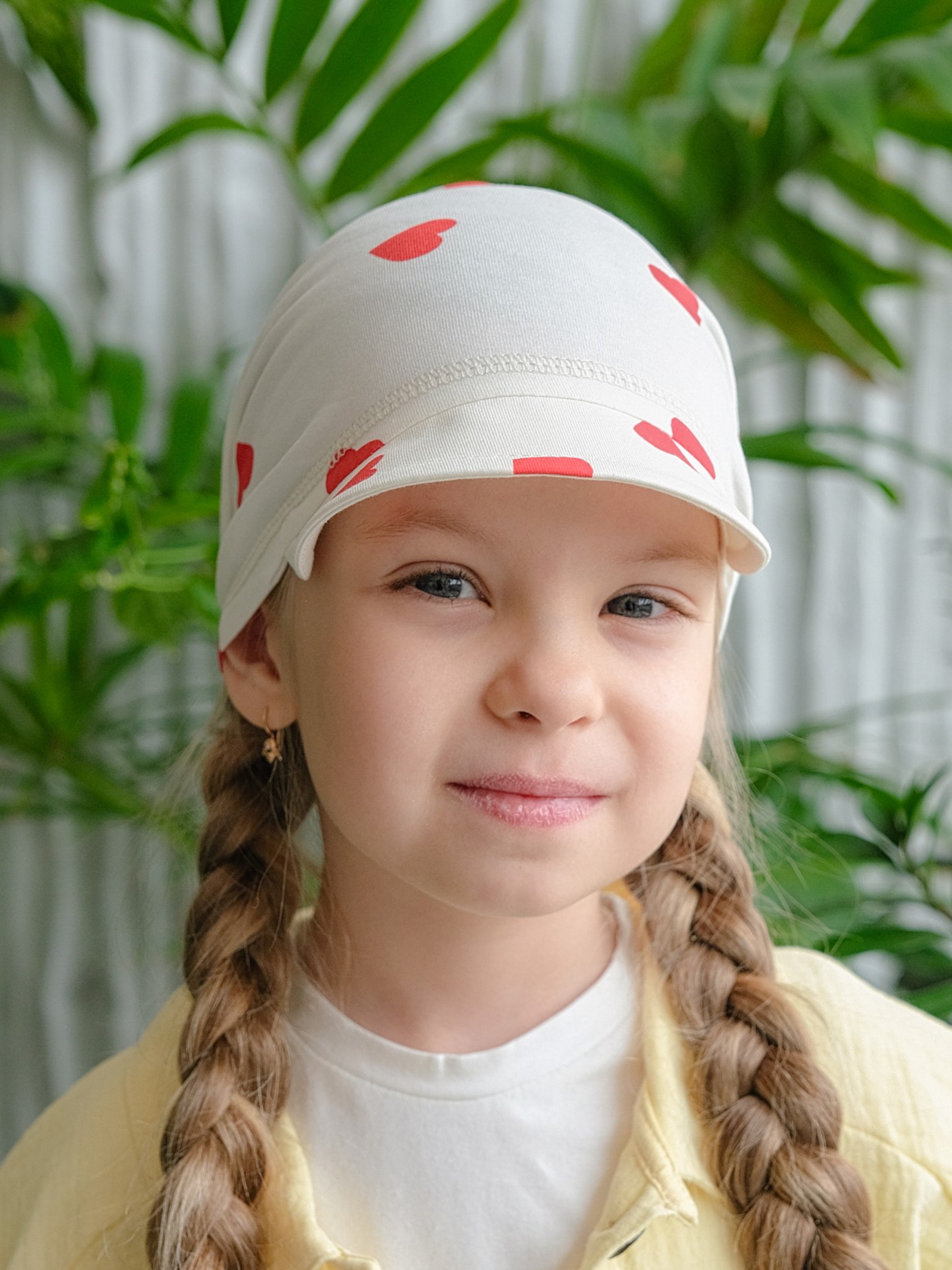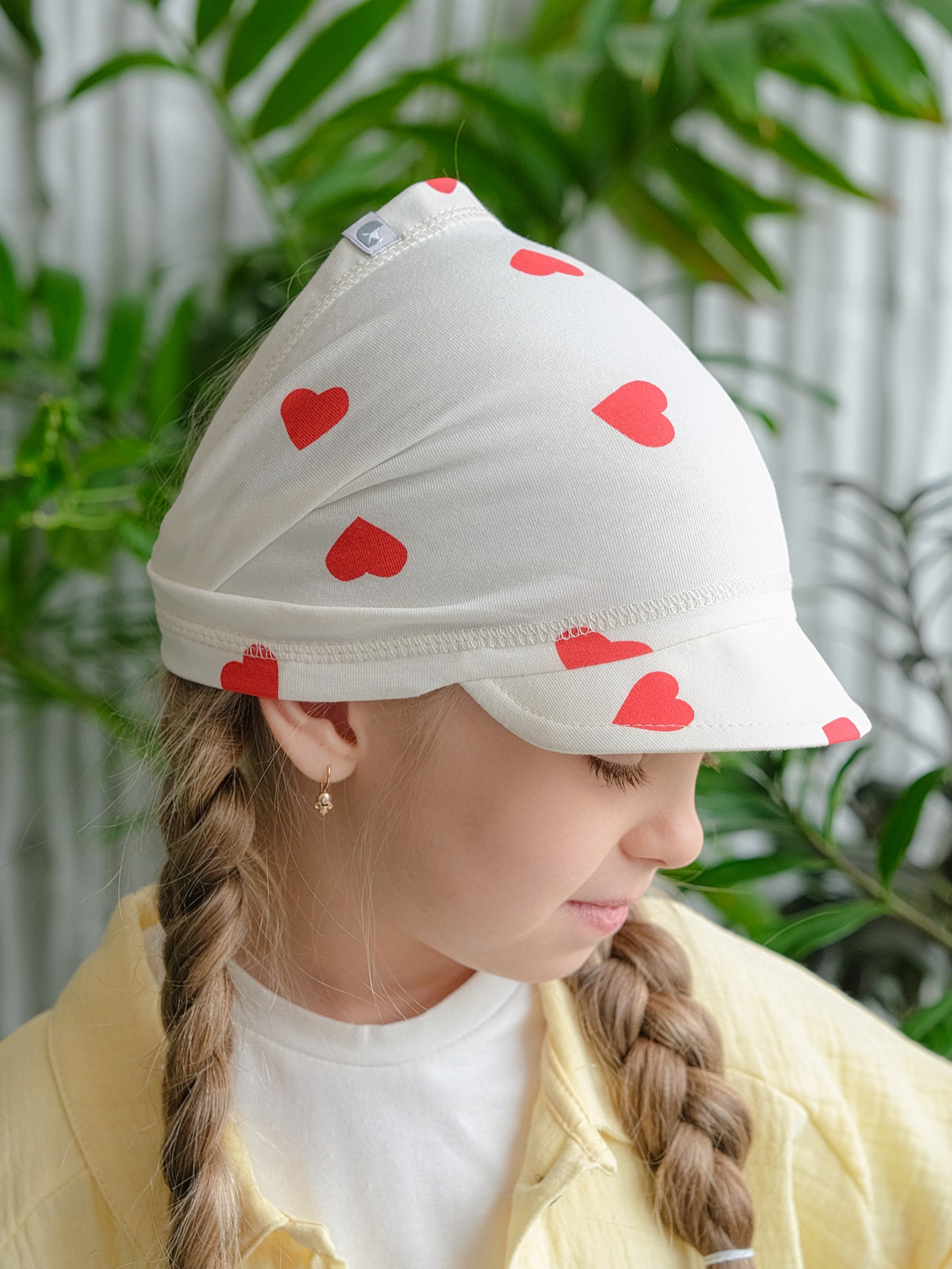 Детская косынка с козырьком на резинке для девочки от 1 года до 7 лет. Легкая и тонкая пляжная повязка прямоугольного кроя надежно защитит голову ребенка от палящего летнего солнца.