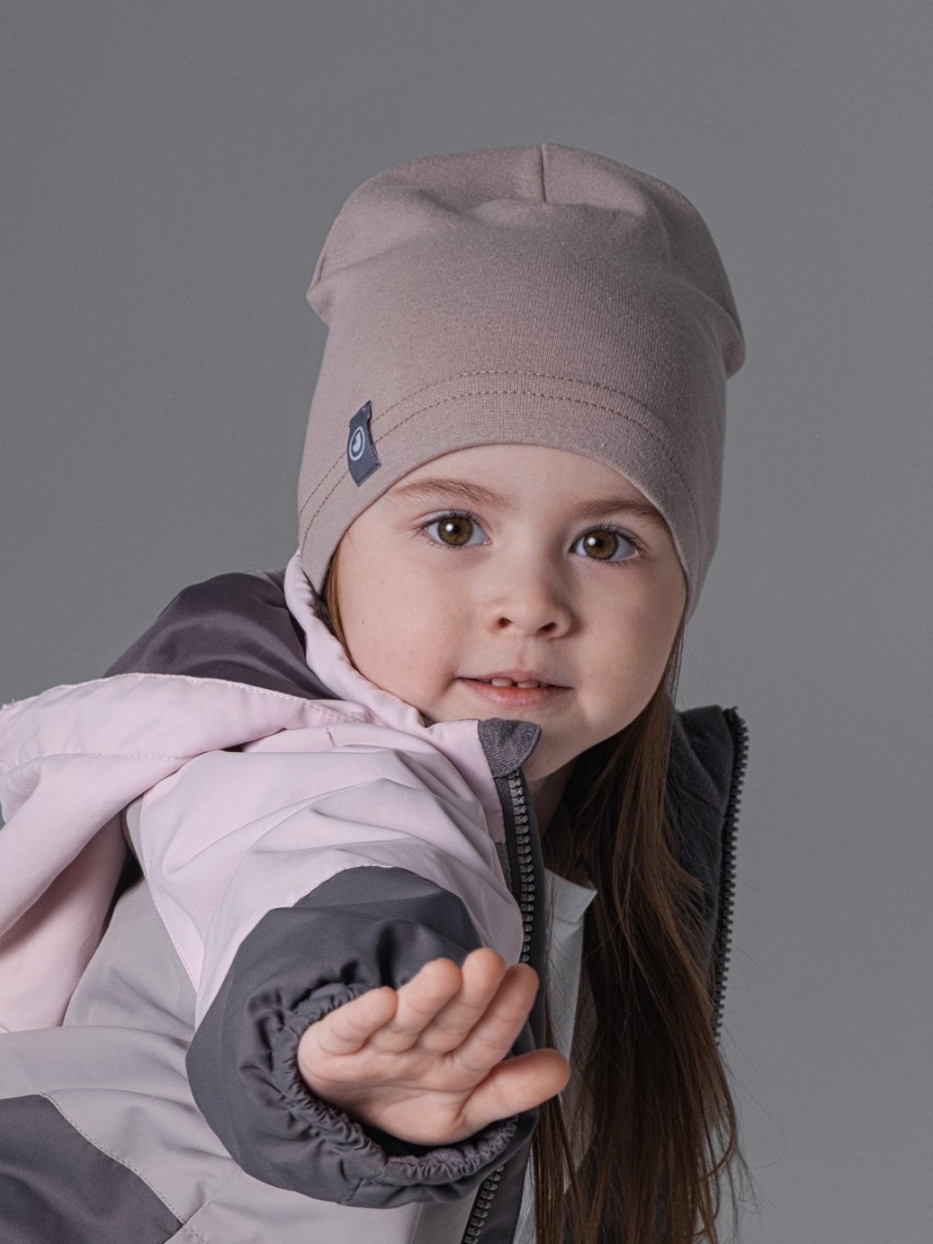 Шапочка однослойная, вытянутой формы бини. Украшена аккуратным фирменным шевроном Jumbi. Шапка тонкая весенняя для девочки, мальчика аккуратно сидит по голове, защищает голову малыша в ветреную погоду осенью, весной и прохладным летом.