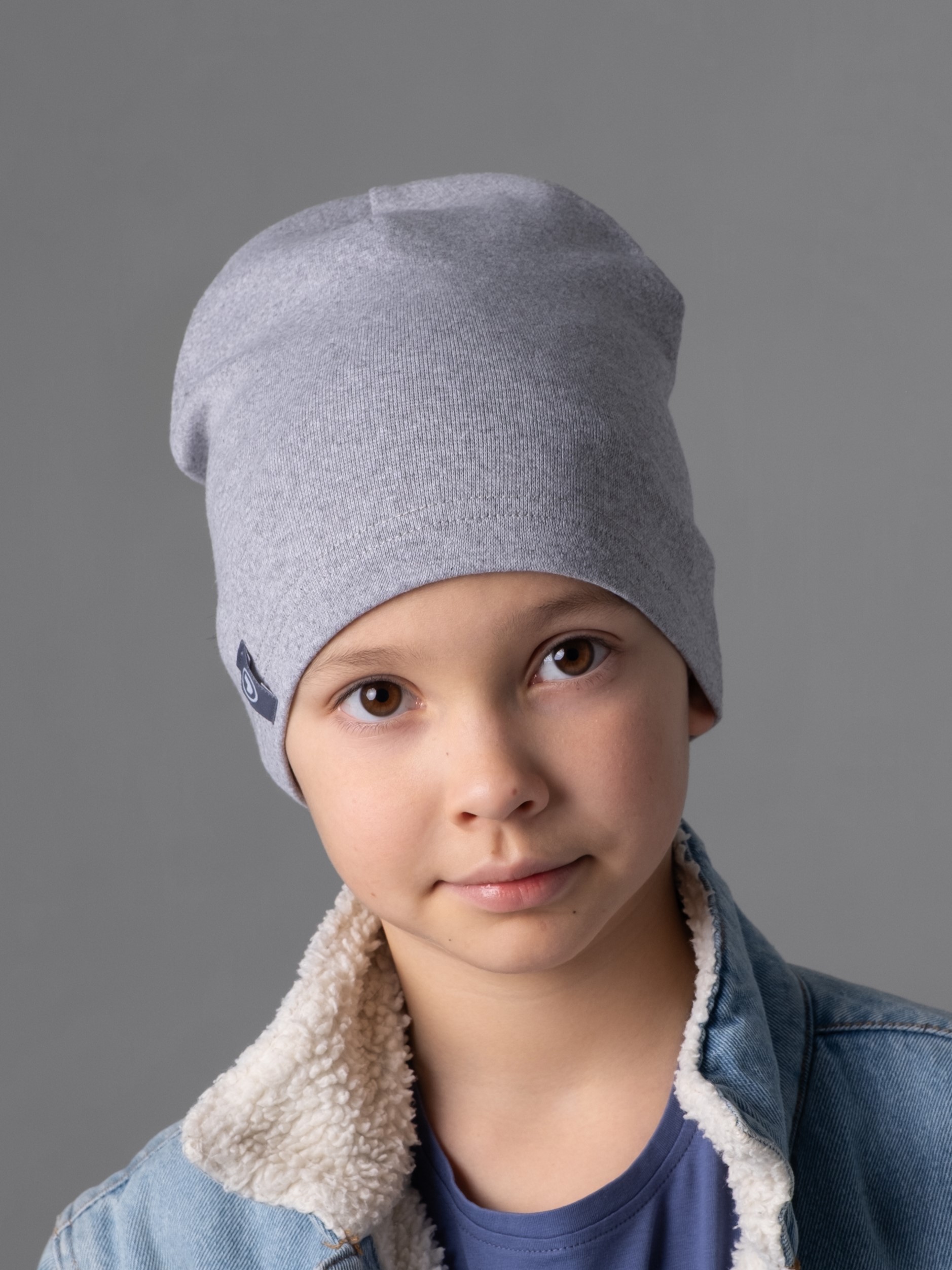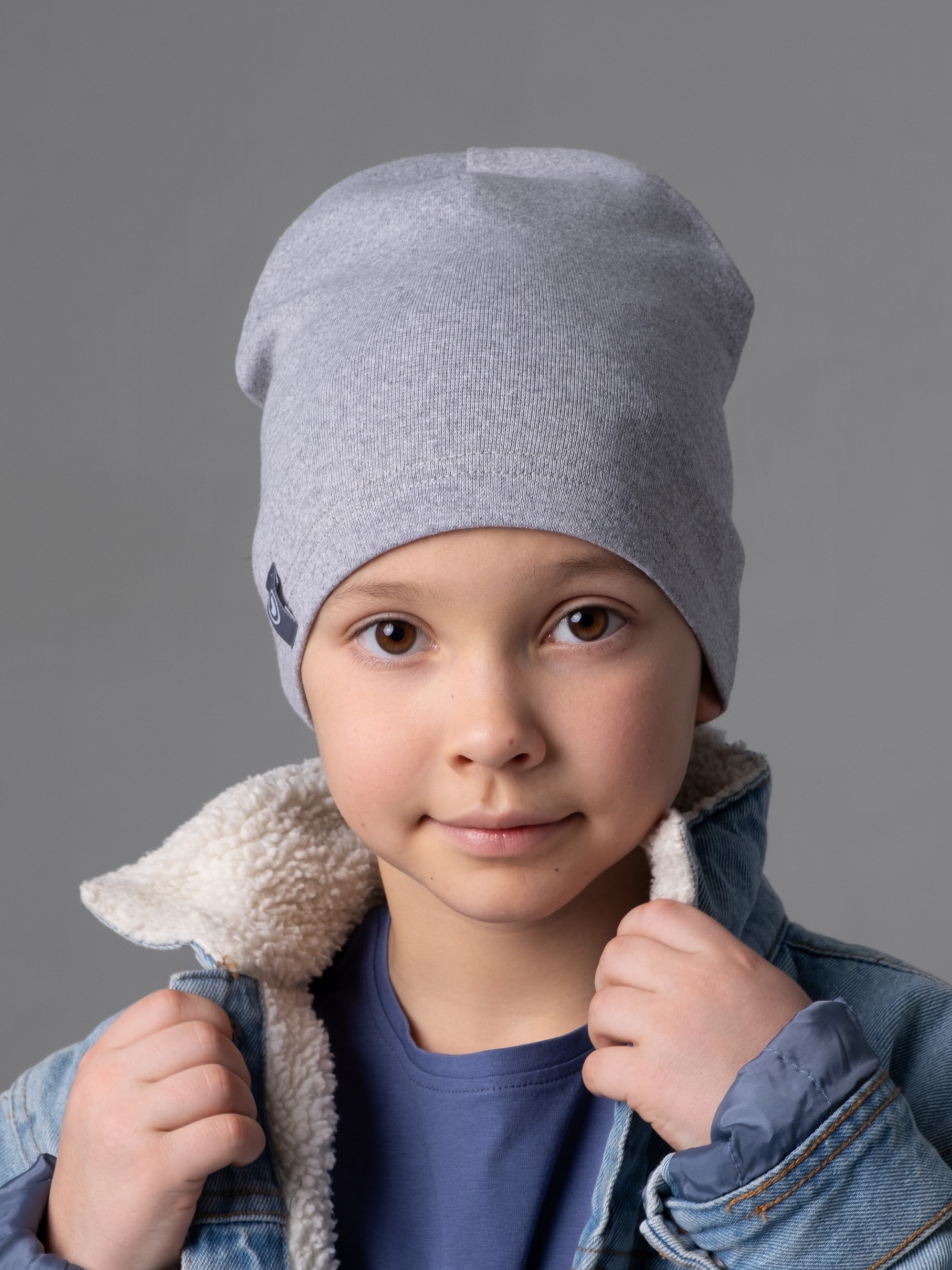 Шапочка однослойная, вытянутой формы бини. Украшена аккуратным фирменным шевроном Jumbi. Шапка тонкая весенняя для девочки, мальчика аккуратно сидит по голове, защищает голову малыша в ветреную погоду осенью, весной и прохладным летом.