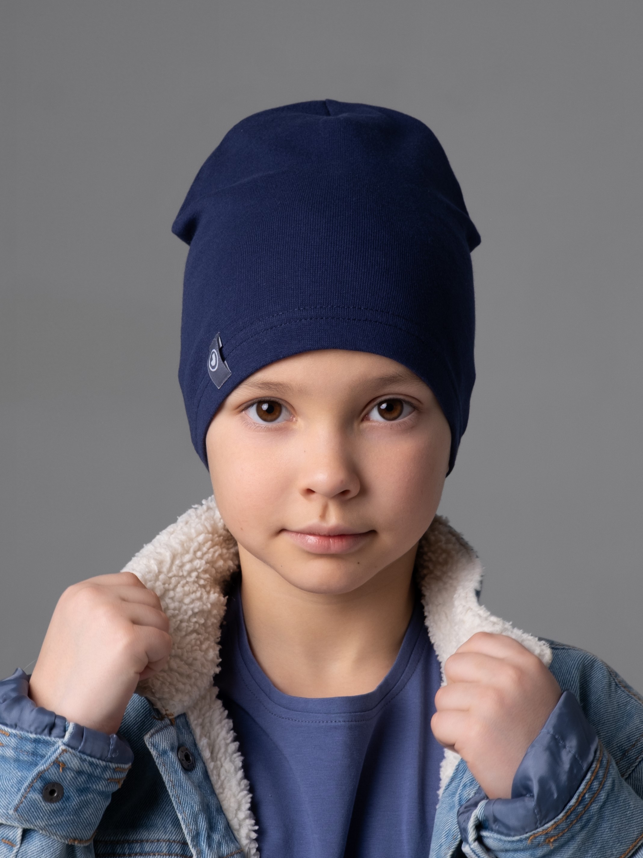Шапочка однослойная, вытянутой формы бини. Украшена аккуратным фирменным шевроном Jumbi. Шапка тонкая весенняя для девочки, мальчика аккуратно сидит по голове, защищает голову малыша в ветреную погоду осенью, весной и прохладным летом.