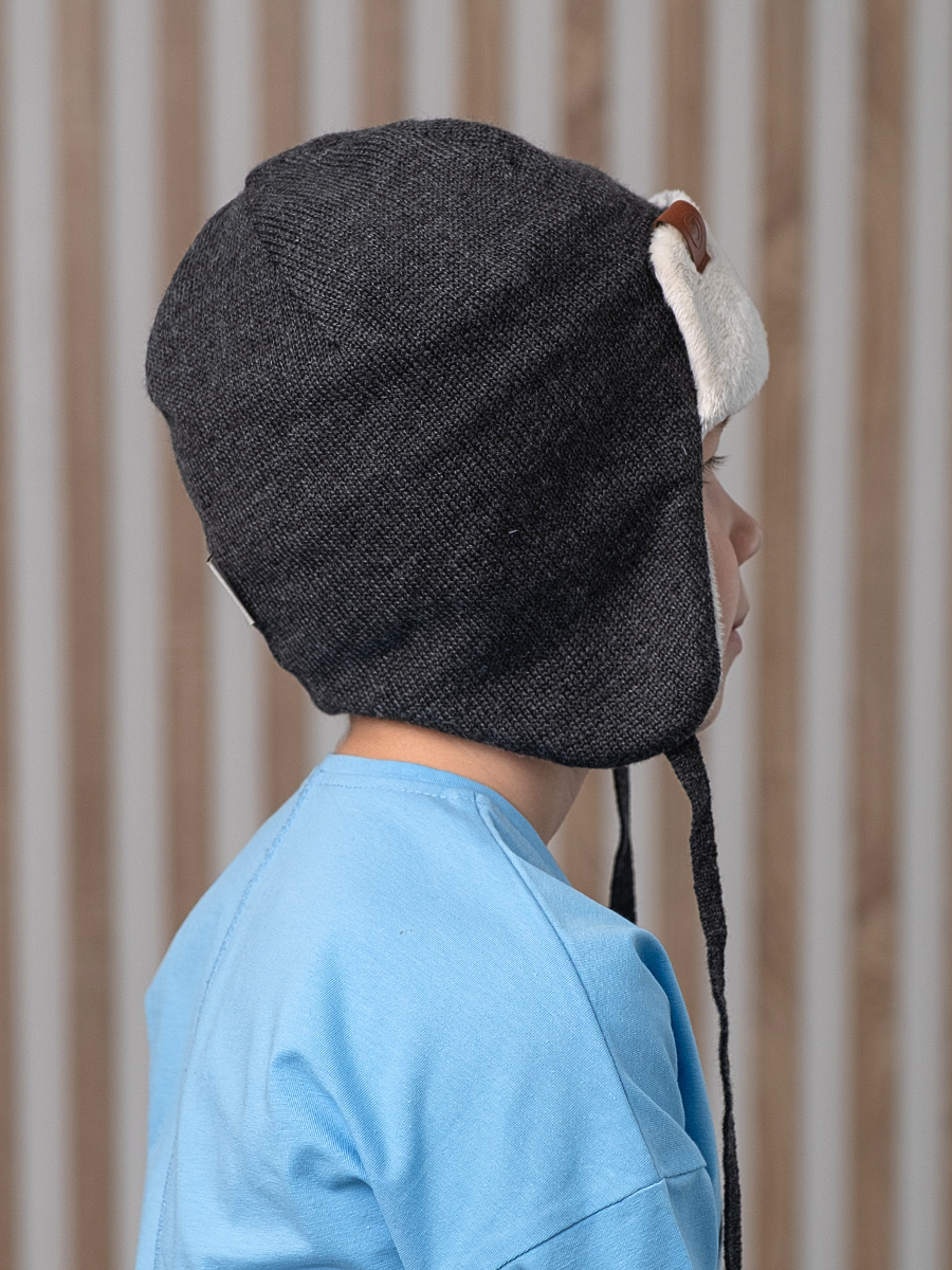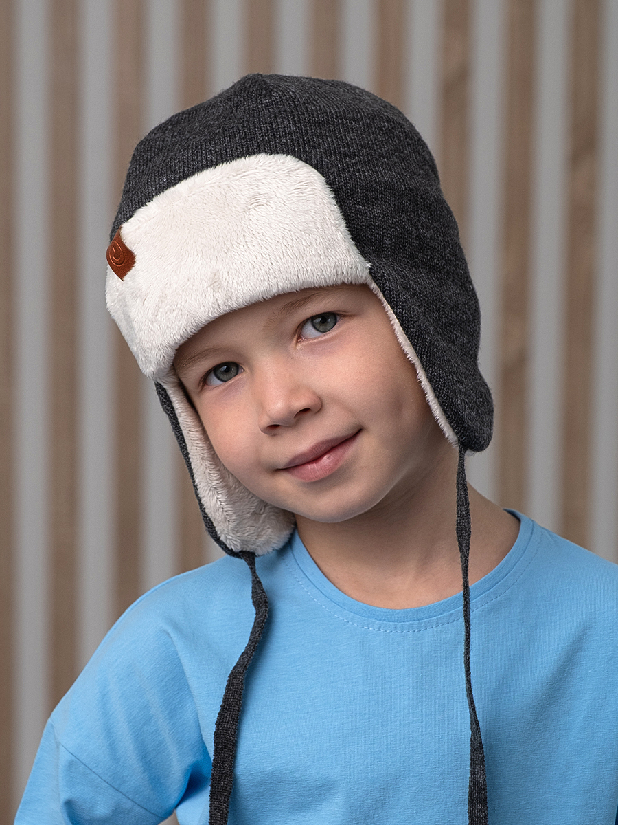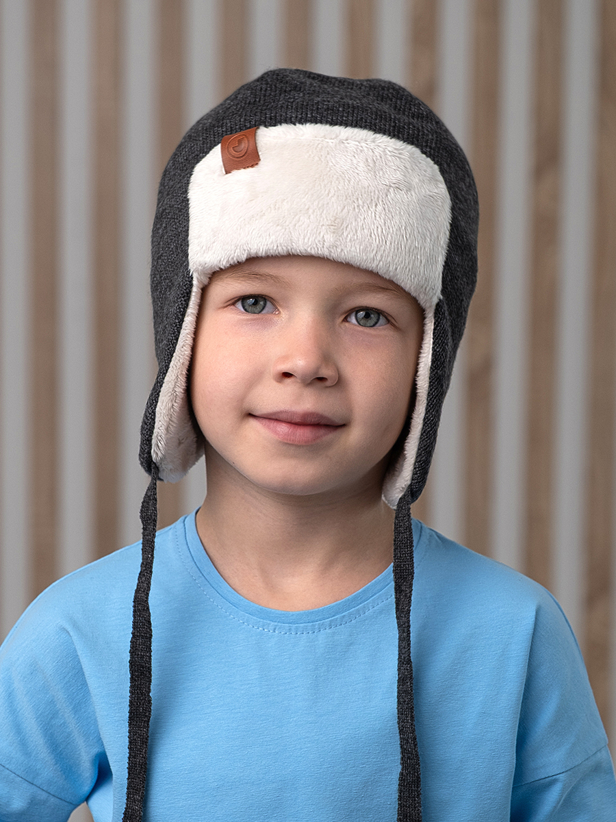 Шапка детская состоит из трех слоев: верхнее вязаное полотно - 100% акрил высокого качества, приятный наощупь, далее ветрозащитная планка (100% пэ) и хлопковый подклад (95% хлопок, 5% эластан). Ветрозащитная планка по всему периметру шапочки защищает уши, лоб и затылок ребенка даже при сильном ветре. Нежный подклад из хлопка отведет лишнюю влагу, если малыш активный, - голова останется сухой, и ребенок не застынет.
