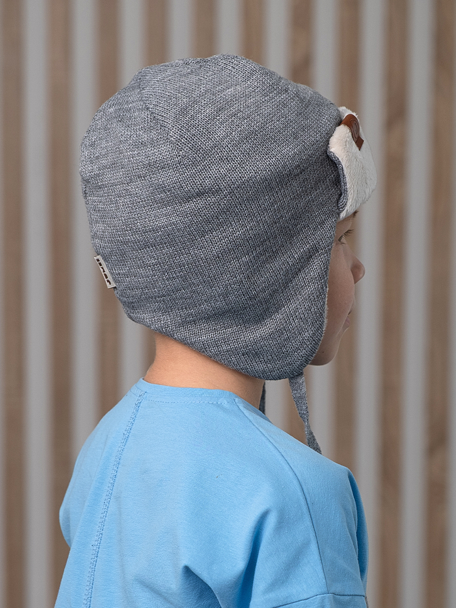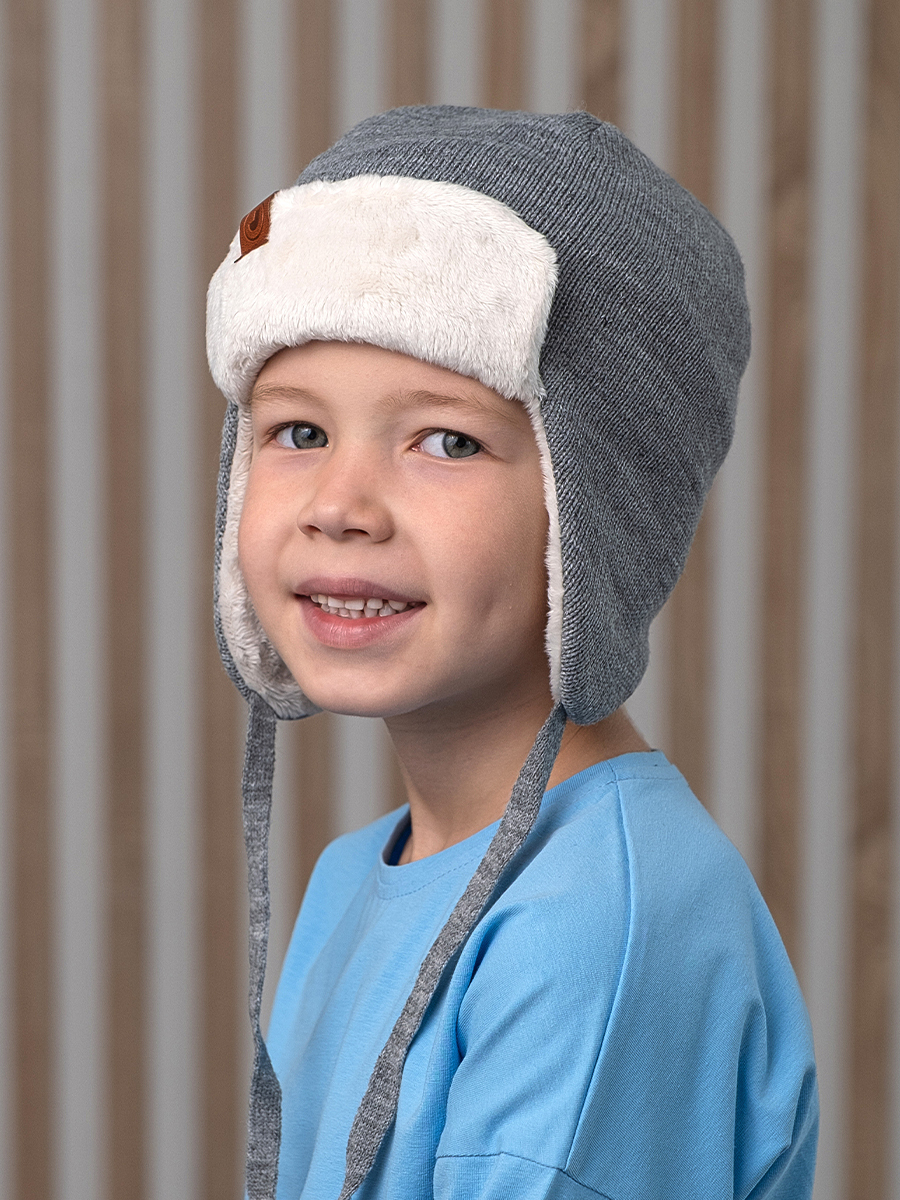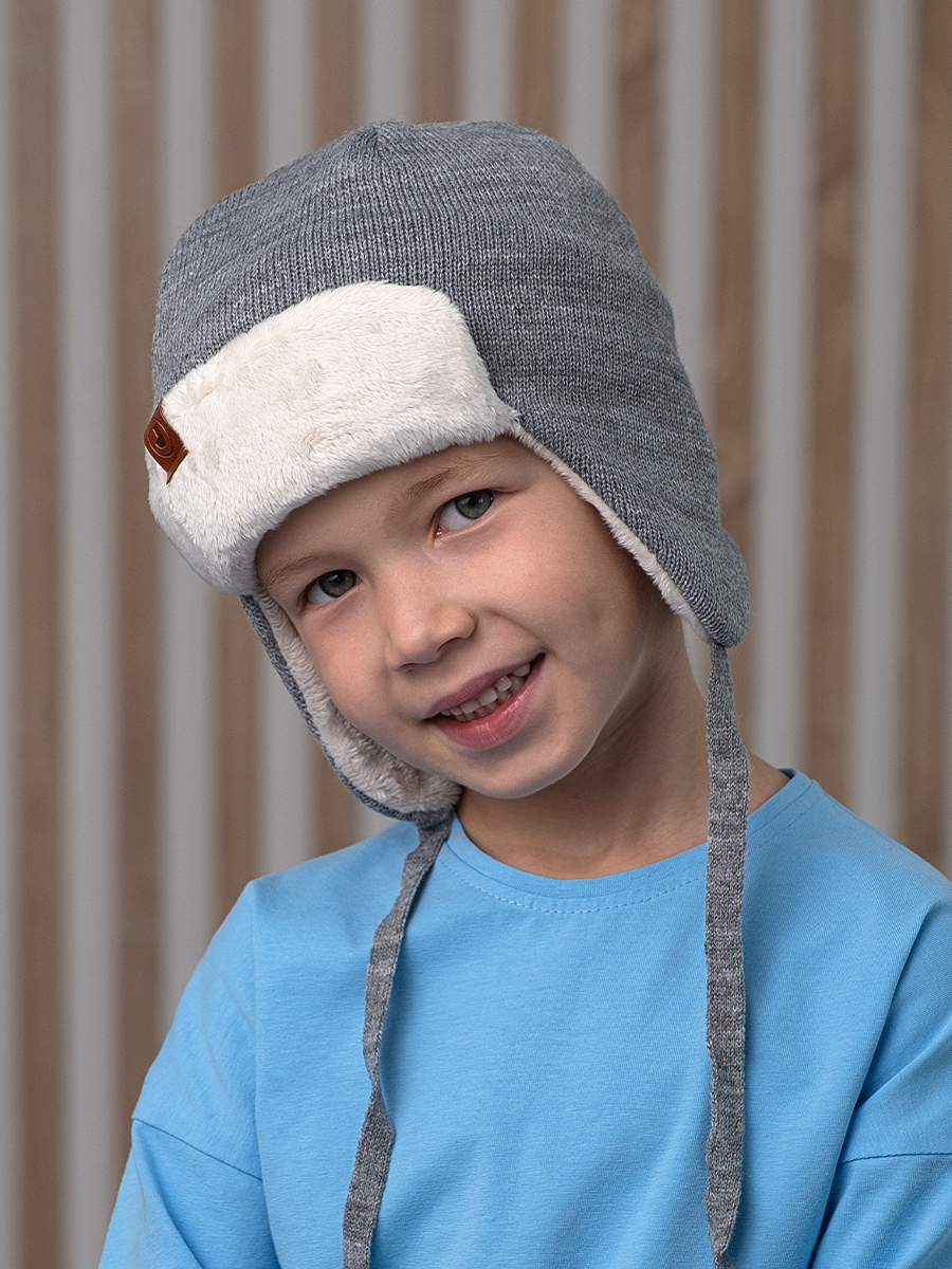 Шапка детская состоит из трех слоев: верхнее вязаное полотно - 100% акрил высокого качества, приятный наощупь, далее ветрозащитная планка (100% пэ) и хлопковый подклад (95% хлопок, 5% эластан). Ветрозащитная планка по всему периметру шапочки защищает уши, лоб и затылок ребенка даже при сильном ветре. Нежный подклад из хлопка отведет лишнюю влагу, если малыш активный, - голова останется сухой, и ребенок не застынет.