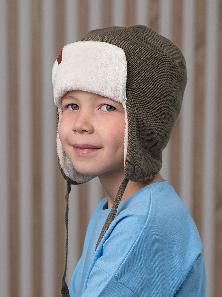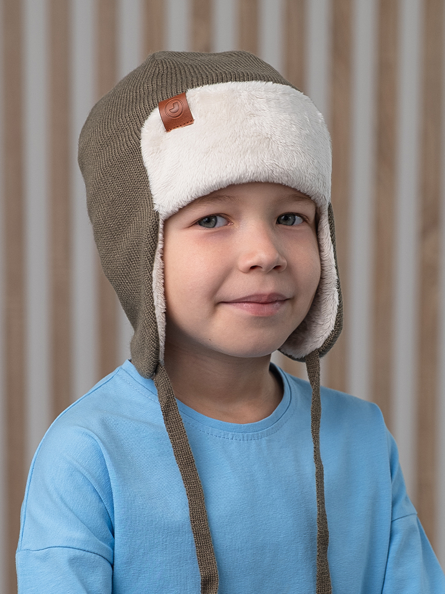Шапка детская состоит из трех слоев: верхнее вязаное полотно - 100% акрил высокого качества, приятный наощупь, далее ветрозащитная планка (100% пэ) и хлопковый подклад (95% хлопок, 5% эластан). Ветрозащитная планка по всему периметру шапочки защищает уши, лоб и затылок ребенка даже при сильном ветре. Нежный подклад из хлопка отведет лишнюю влагу, если малыш активный, - голова останется сухой, и ребенок не застынет.
