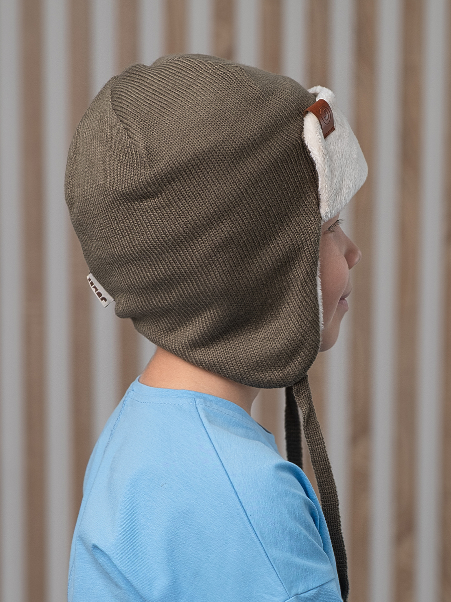Шапка весенняя/осенняя вязаная (Серый хакки) ТОКИ велюр