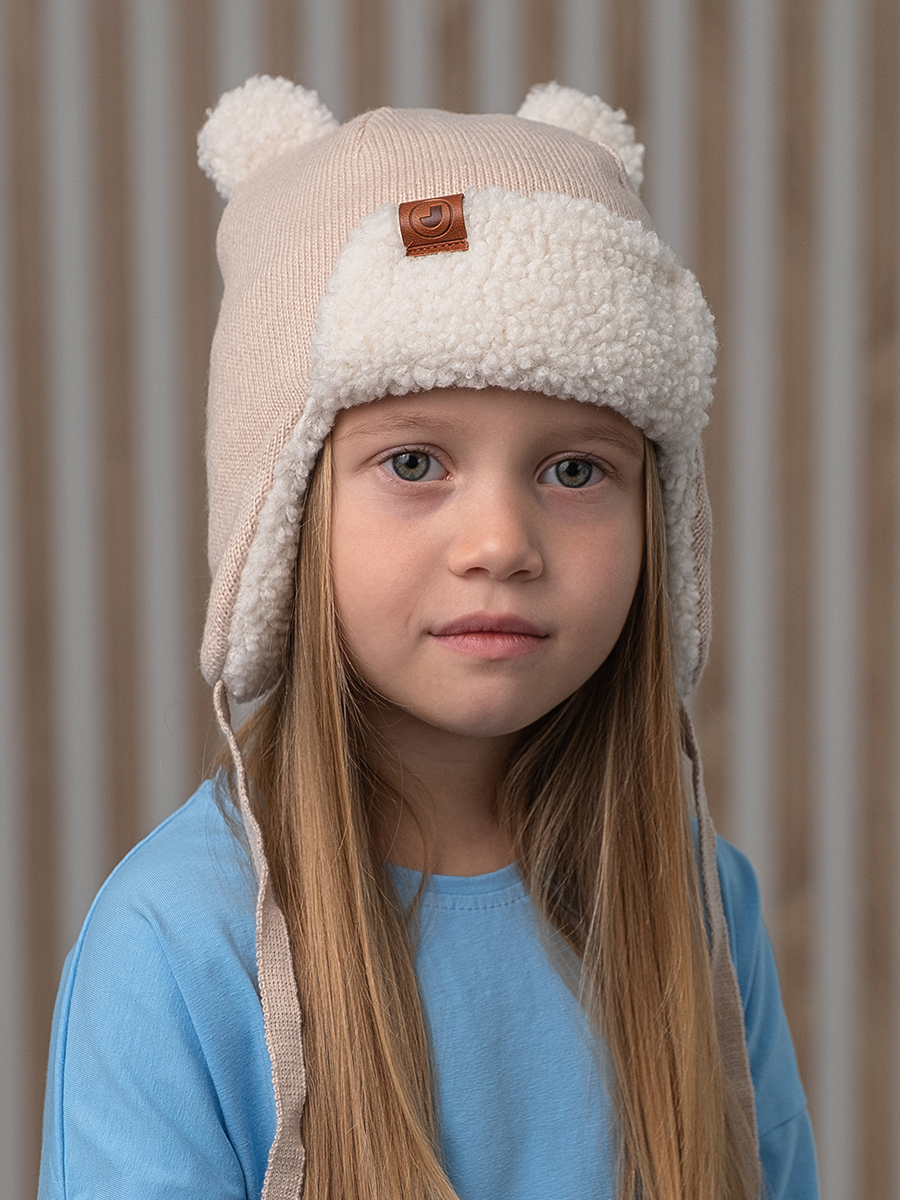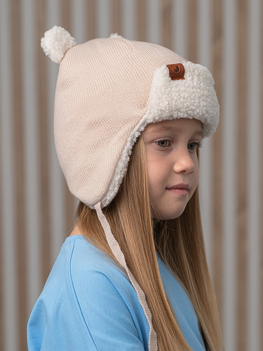 Шапка для девочки зимняя на завязках, состоит из 4 слоев: верх - вязаное полотно (100% акрил), далее утеплитель Thermofinn Plus 100 и ветрозащита (100% пэ), хлопковый подклад (95% хлопок, 5% эластан). Комфортная температура носки от +5 до -25 градусов. Шапка с завязками теплая, мягкая, не колется. Современный утеплитель Thermofinn Plus 100 по всему периметру шапочки и вставки из ветрозащитной планки по ушам защищают от холода и сильного ветра. Нежный хлопковый подклад отведет лишнюю влагу, если малыш активный, - голова останется сухой, и ребенок не застынет.