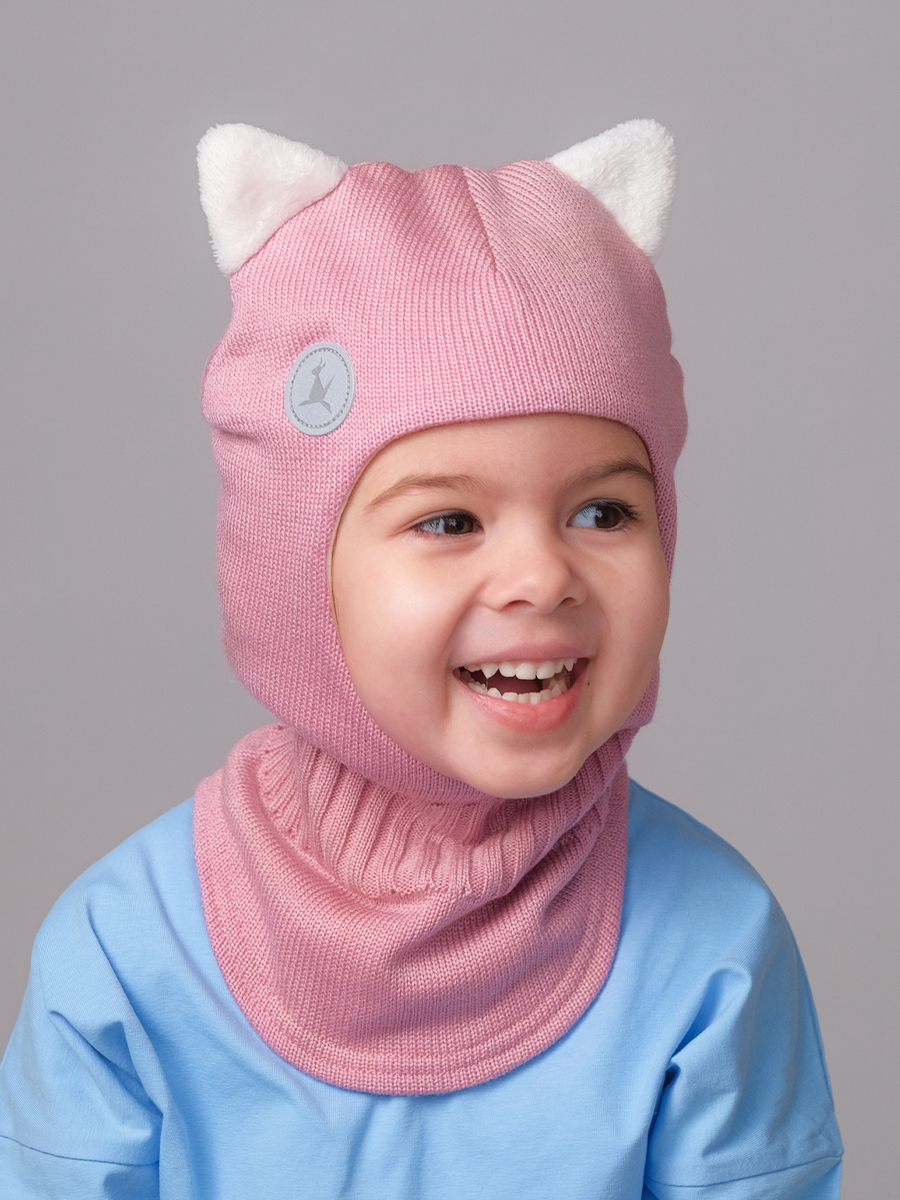 Шлем весенний/осенний вязаный (Розовый рашаль) КИС